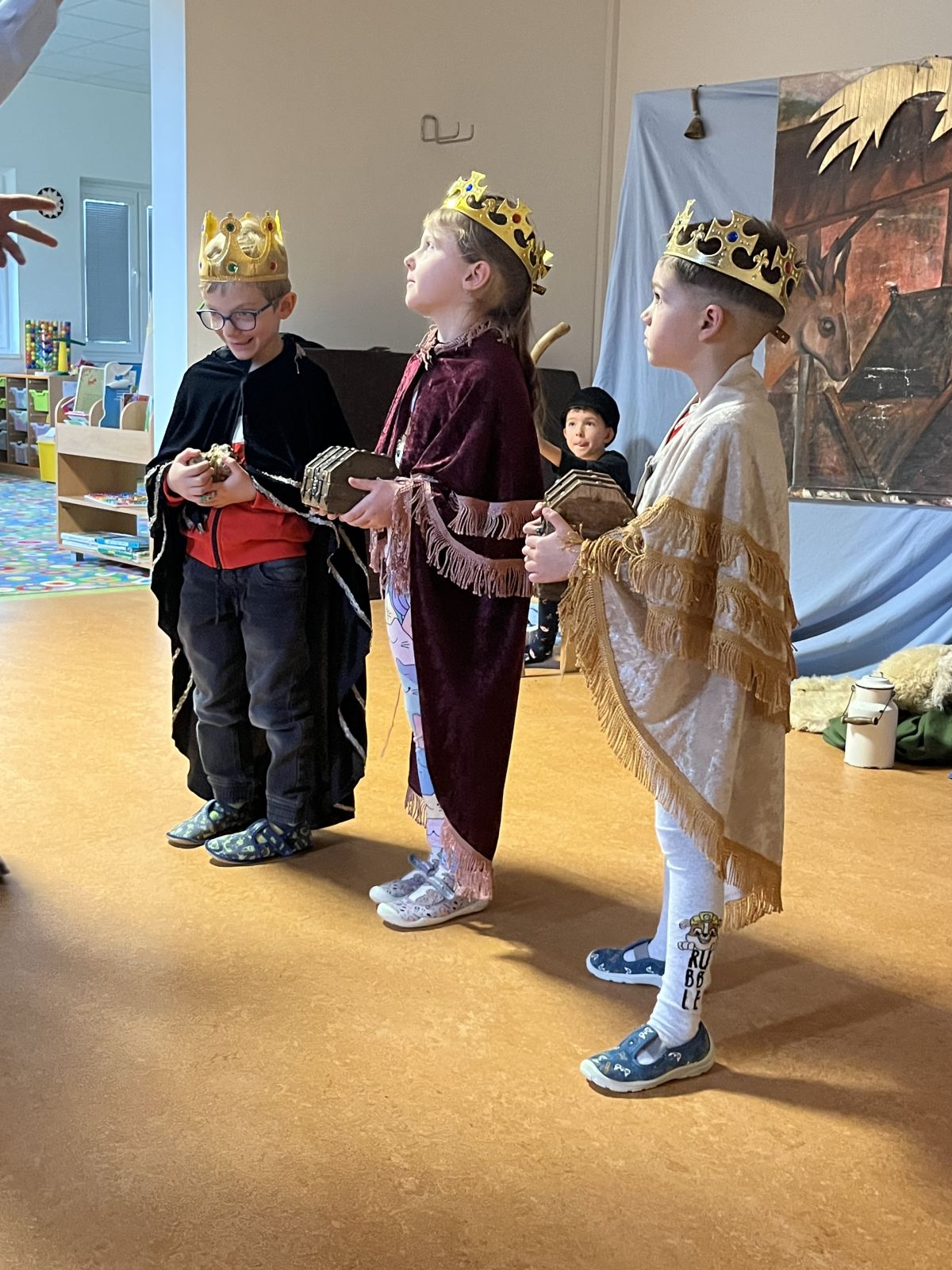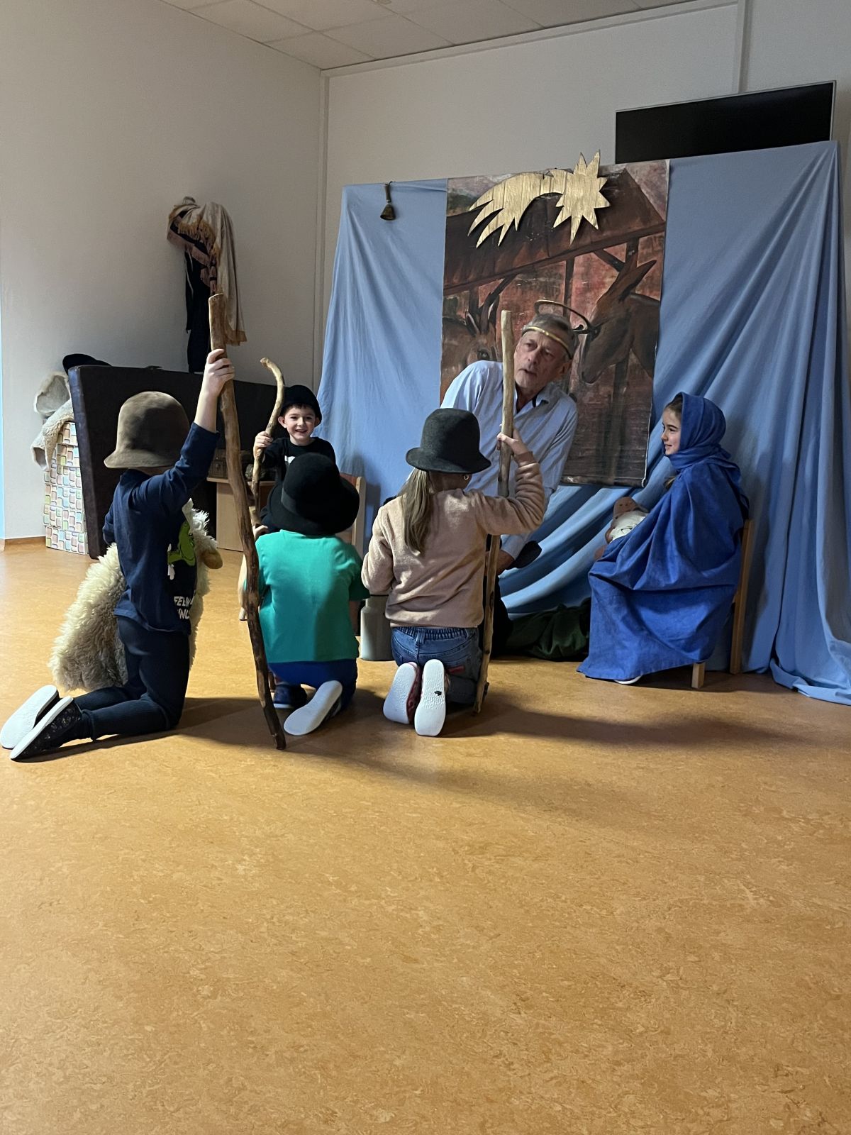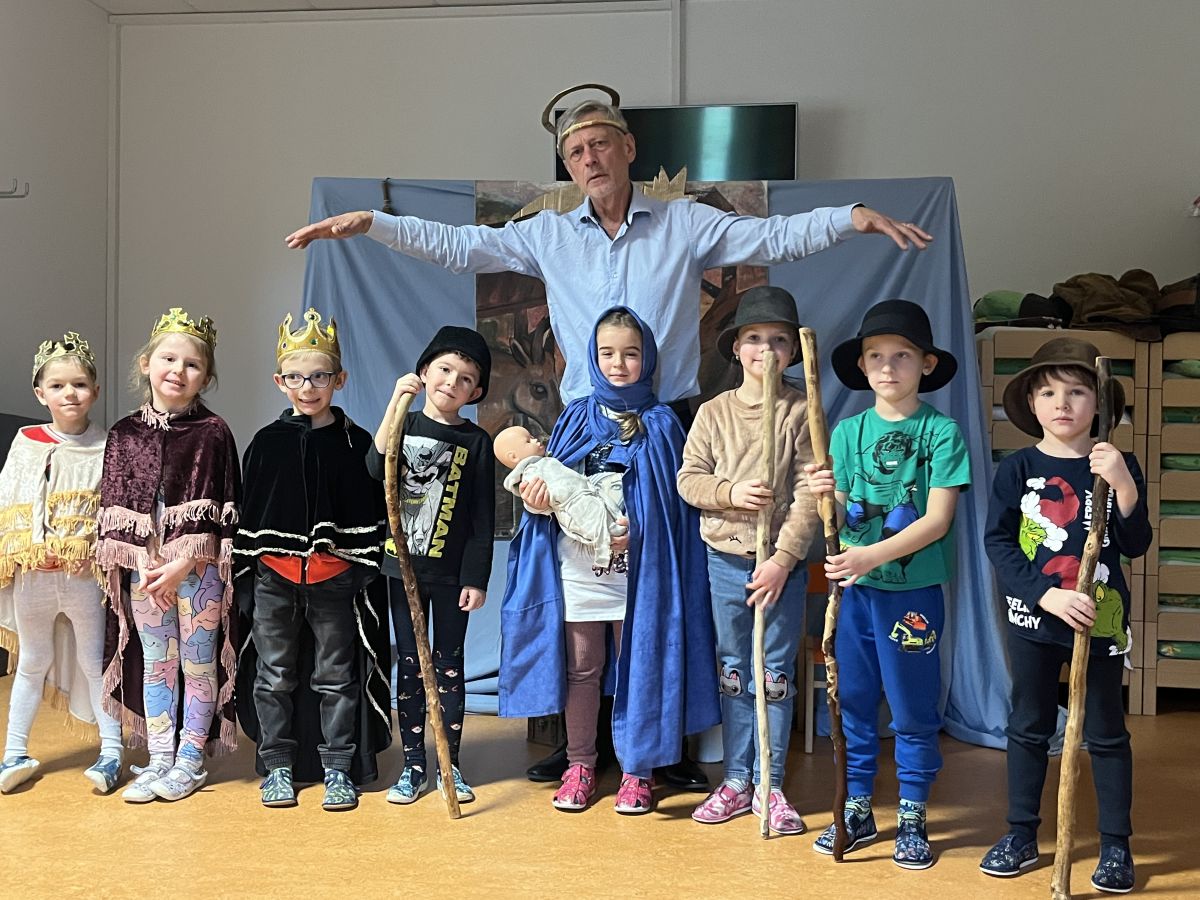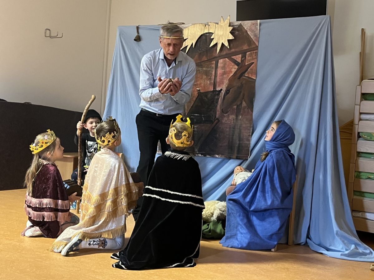 V mateřské škole se uskutečnilo krásné divadelní představení s názvem Slyšte, slyšte, pastuškové, které dětem přiblížilo příběh o narození Ježíše. Pohádkové zpracování vánočního příběhu bylo doplněno písničkami, jednoduchými dialogy a milými postavami, které děti zaujaly a navodily sváteční atmosféru. Malí diváci se aktivně herecky zapojovali, zpívali a s nadšením sledovali děj. Děti se tak seznámily s příběhem Marie a Josefa, narozením Ježíška v Betlémě, s postavami Tří králů i s pastýři, kteří se o radostnou zprávu přišli podělit. Představení kladlo důraz na hodnoty, jako jsou láska, pokora, radost a vzájemná pomoc. Celé divadélko se neslo v klidném a slavnostním duchu a bylo krásným zpestřením adventního času. Děti si z něj odnesly nejen hezký zážitek, ale i hlubší porozumění vánočnímu příběhu.