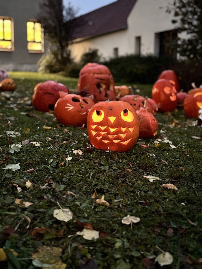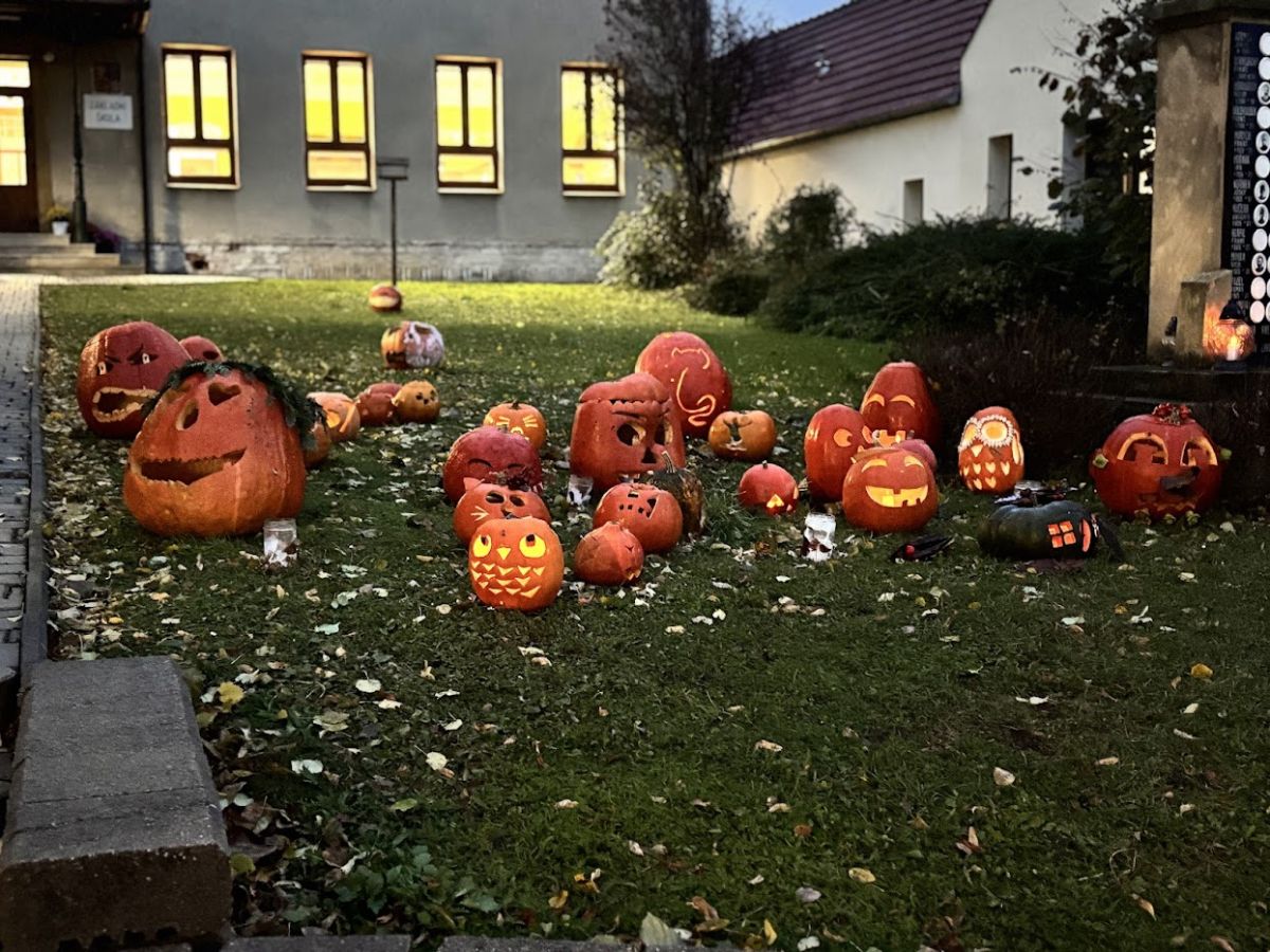 Před naší školou právě probíhá krásná podzimní výstava dýní. Žáci donesli originální dýně ze svých domovů, některé ozdobili, jiné ponechali v přírodní podobě. Vznikla tak pestrá podívaná, která nám zpříjemňuje chladné říjnové dny. Děkujeme všem dětem i rodičům za zapojení a skvělé nápady.